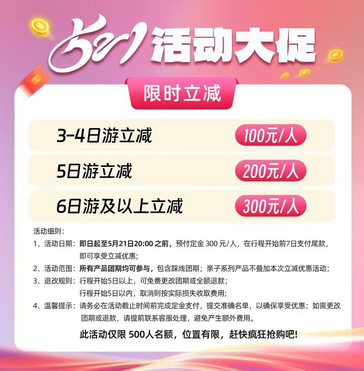 注:行程内时间都为计划时间,如遇暴雨、堵车等情况,具体行程由领队安排。