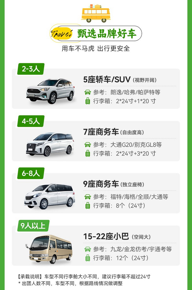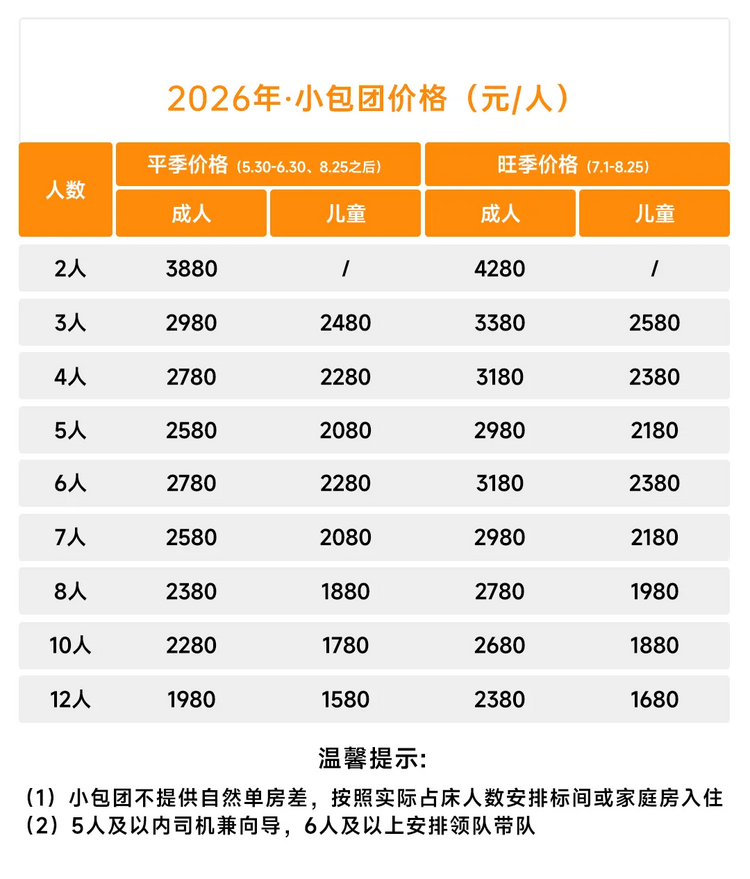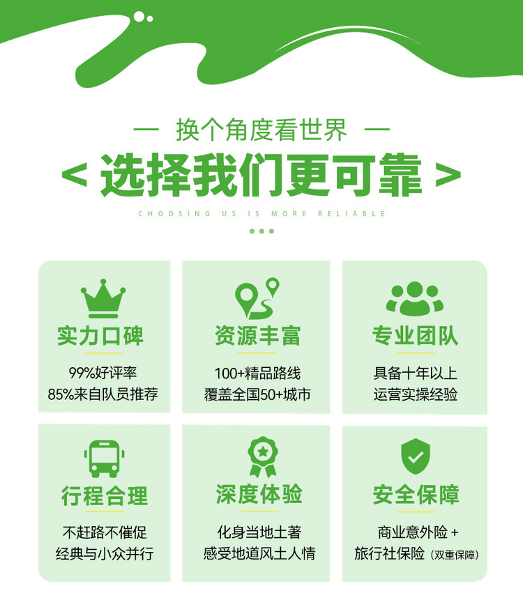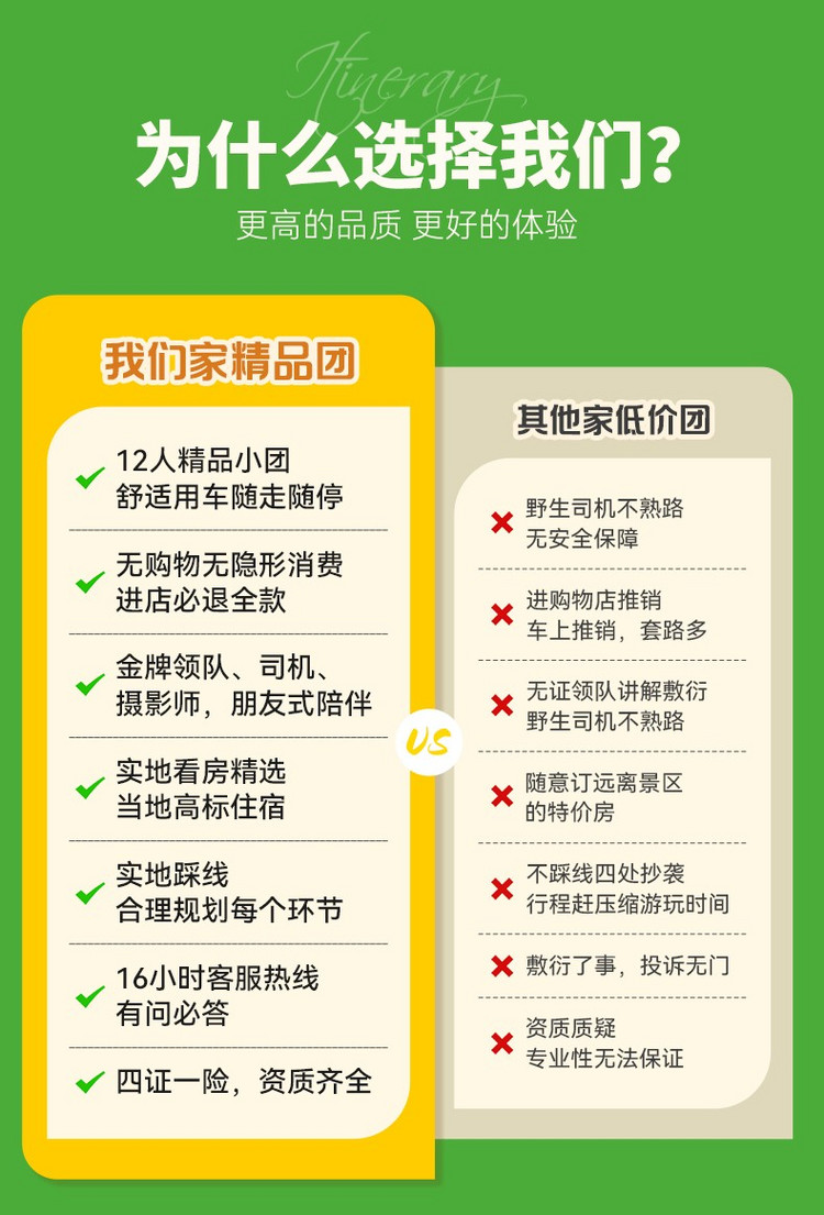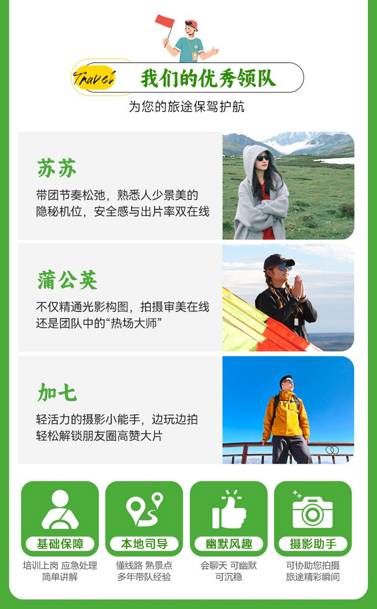 2、以上行程时间及顺序供参考,受天气、交通、景区调控及队员体能等不同影响有可能会调整,以领队实际安排为准。
