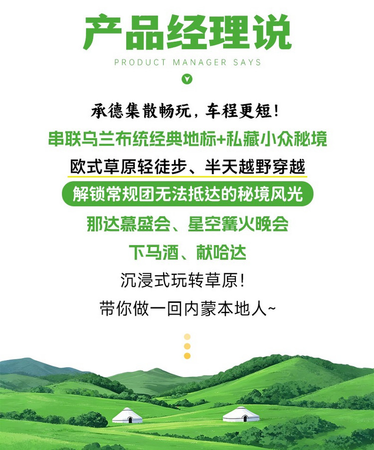 午后乘驱车前往【承德】(250KM,车程约3.5小时),至此,这场塞外草原之旅圆满收官,我们下次再会~