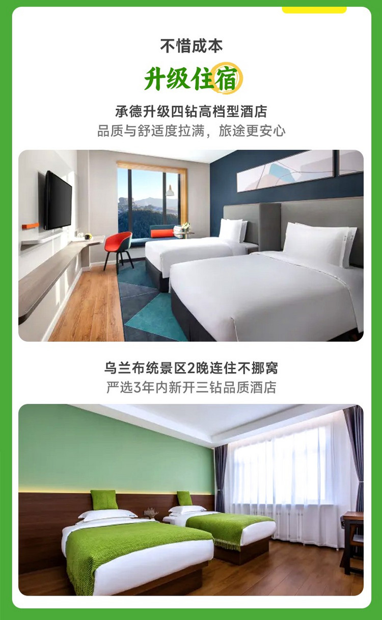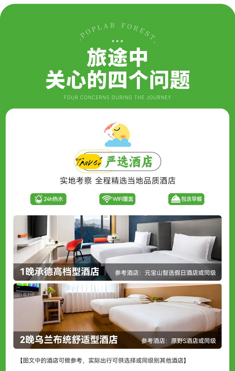 今日为全天集合日,请您自行到达酒店后,报【遇见乌兰布统 + 姓名】,凭有效证件办理入住。无统一行程安排,可自由探索承德,解锁专属惬意时光~