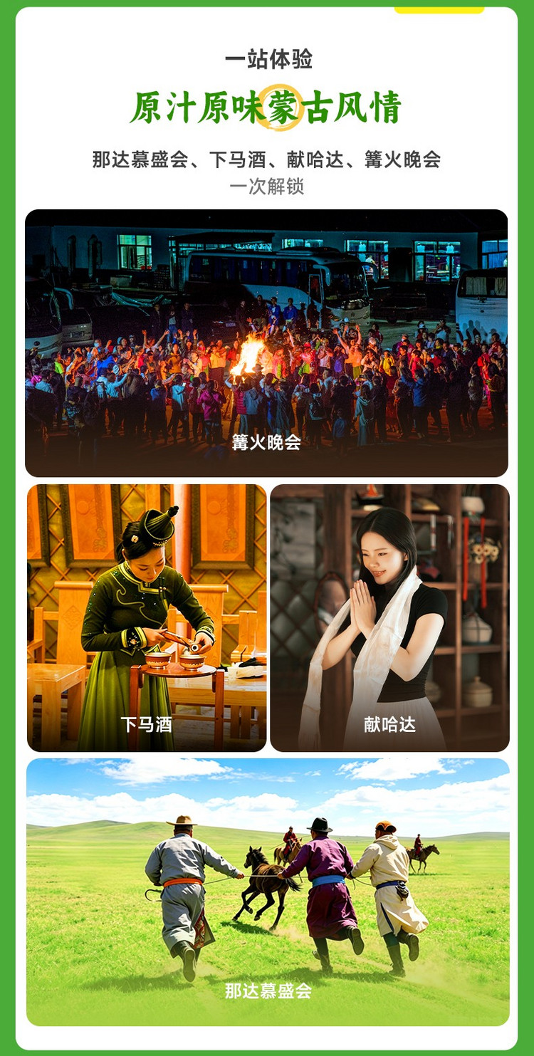 甘丹驼城草原那达慕的体验内容,可能根据季节和天气进行微调,具体以园区安排为准。
