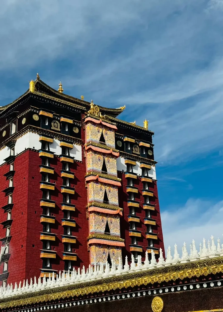 午餐后稍作休息,乘车前往“藏学百科全书”之称的【米拉日巴佛阁】。佛阁通高40余米,九层八面,每一层都供奉着藏传佛教不同流派的祖师与传承,楼内壁画琳琅满目,与彩绘、唐卡、塑像浑然一体,颇具宗教神秘的色彩。