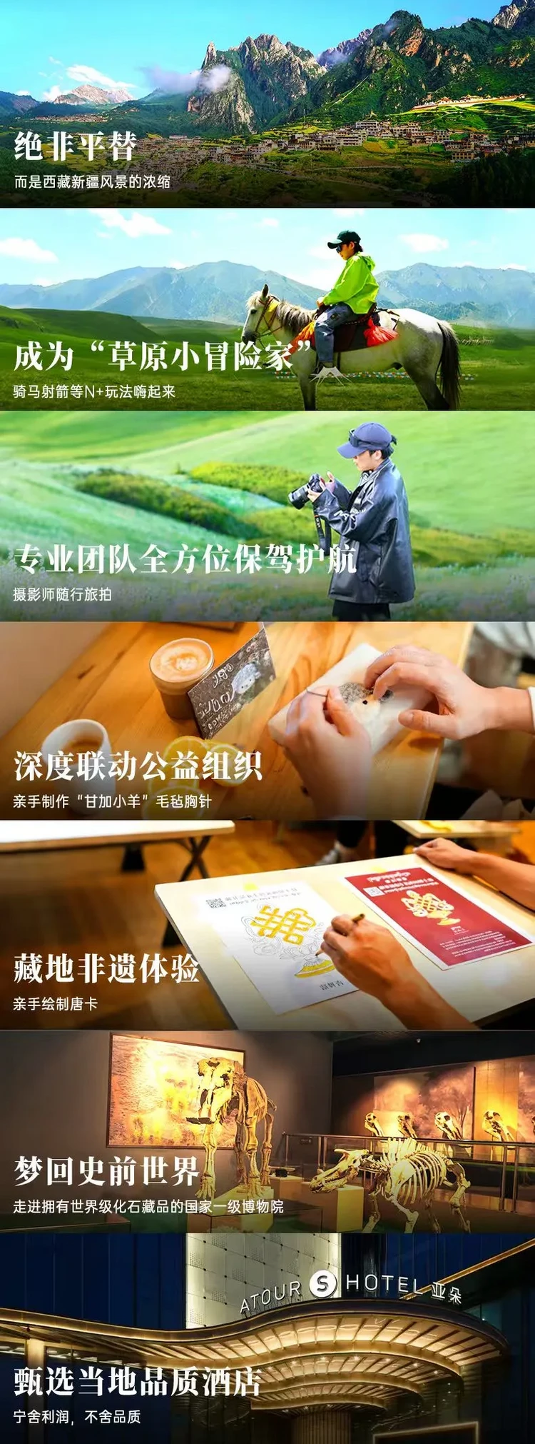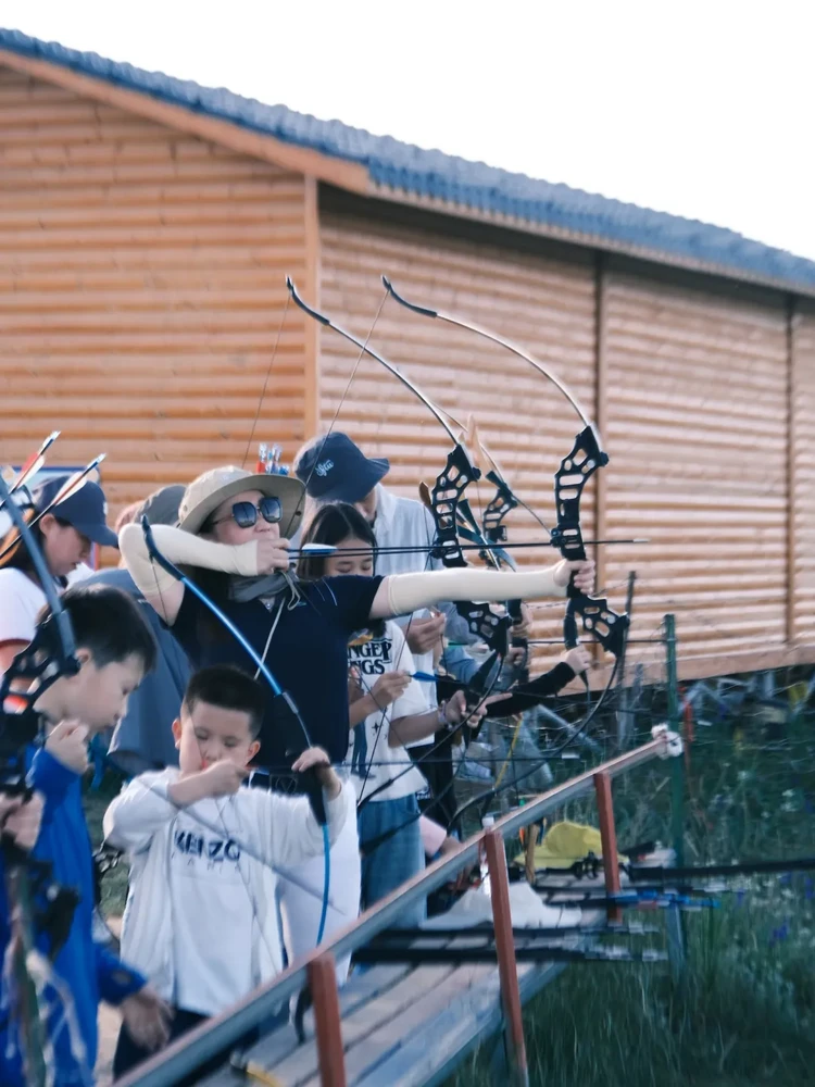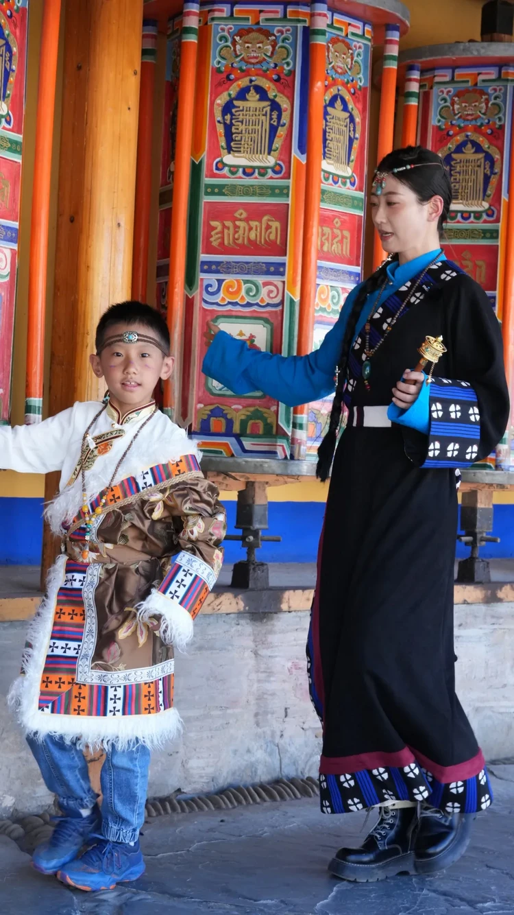 我们先换好藏服,体验“地道牧民”,体验骑马射箭的乐趣,5岁以上均可体验。