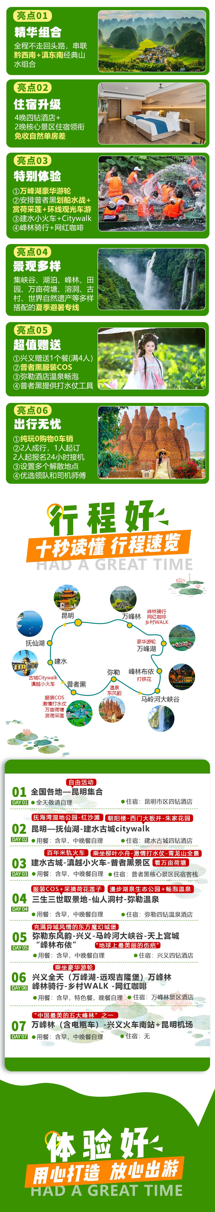 游览重点:万峰湖豪华游轮+万峰林(骑行+乡村WALK+网红咖啡)