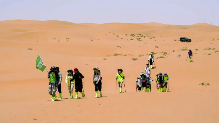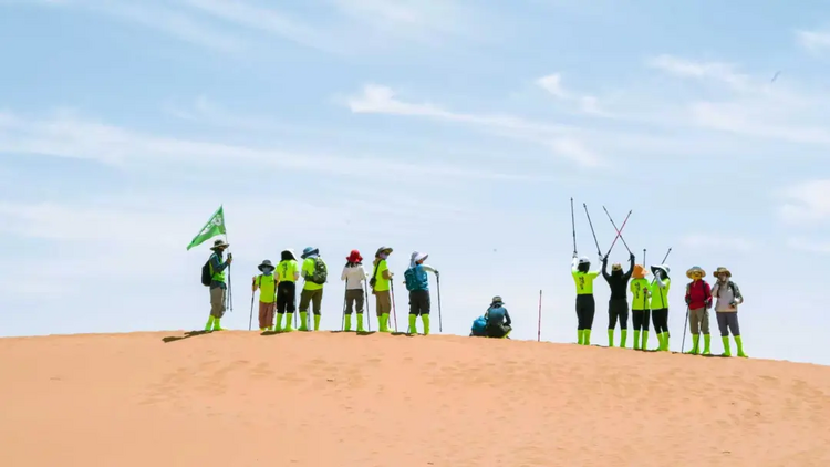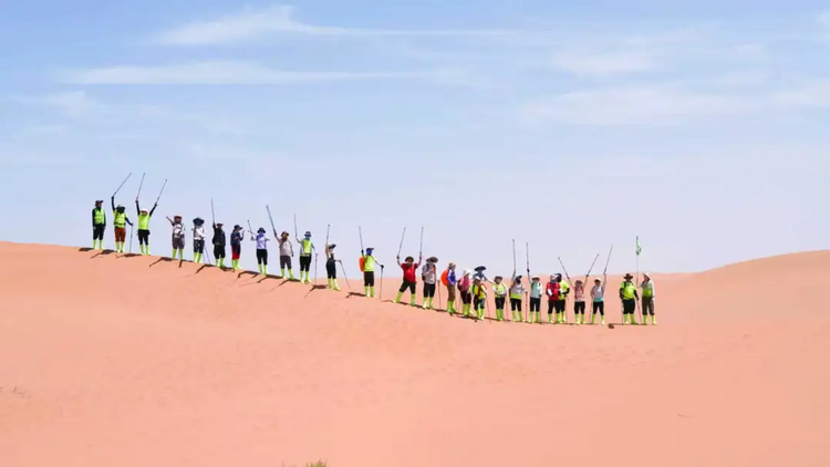 滑沙结束,继续行走10公里左右到达终点! 领队在终点为大家颁发奖牌,集沙瓶,合影留念;午餐过后,大家一起返回银川解散。
