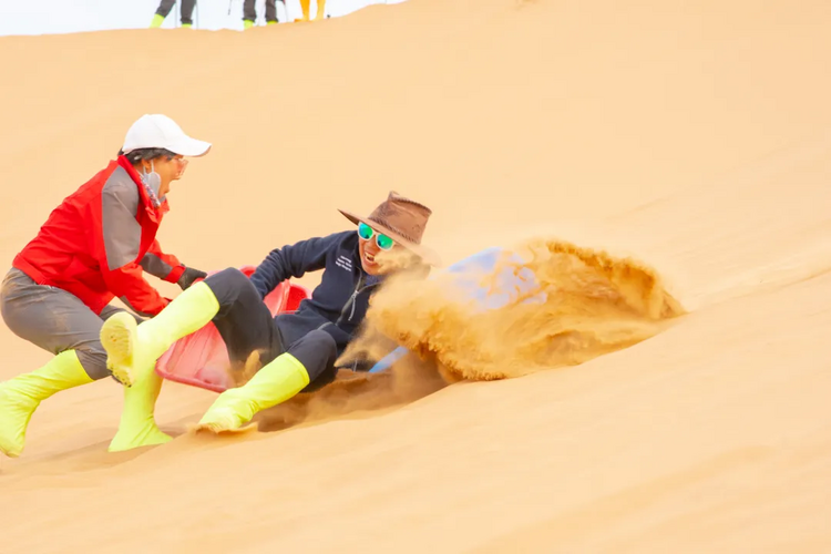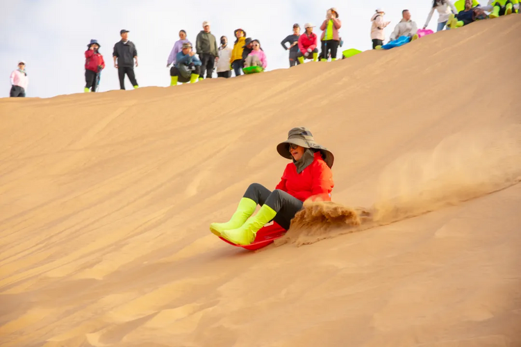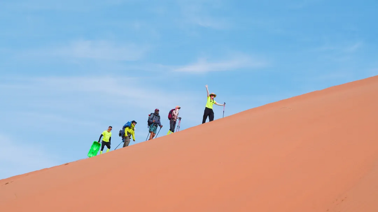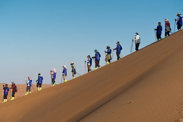 7:00起床,早餐后收拾完营地,翻越大沙山,今日领队选择合适的滑沙地点进行滑沙;
