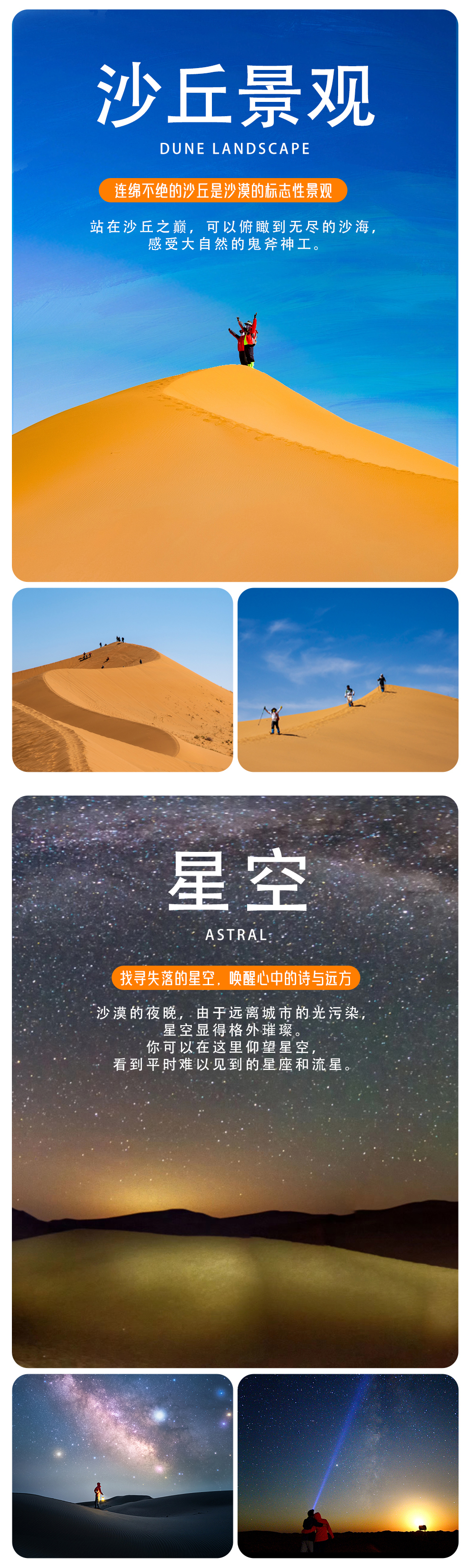 傍晚我们抵达乌兰湖营地,向导会带领大家体验有趣的搭帐篷。晚餐我们享用沙漠特色餐,夜幕降临,星辰点缀黑夜,大家远离城市的喧嚣,一起感受沙漠的静谧。